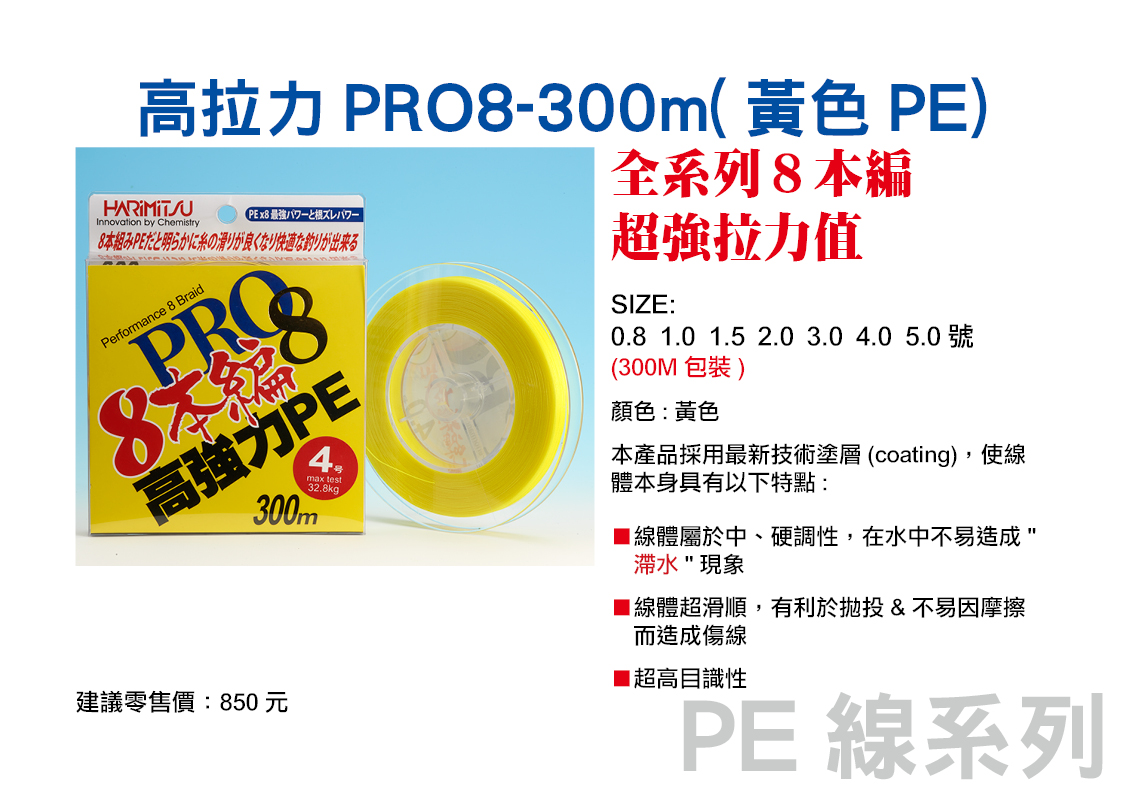 高拉力PRO8-300m(黃色PE)