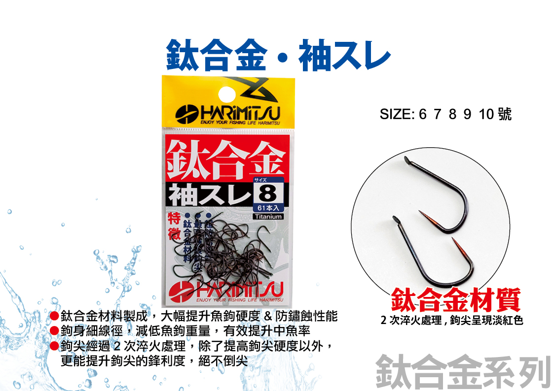 ◇◆ 鈦合金材料製成,大幅提升魚鉤硬度&防銹蝕性能