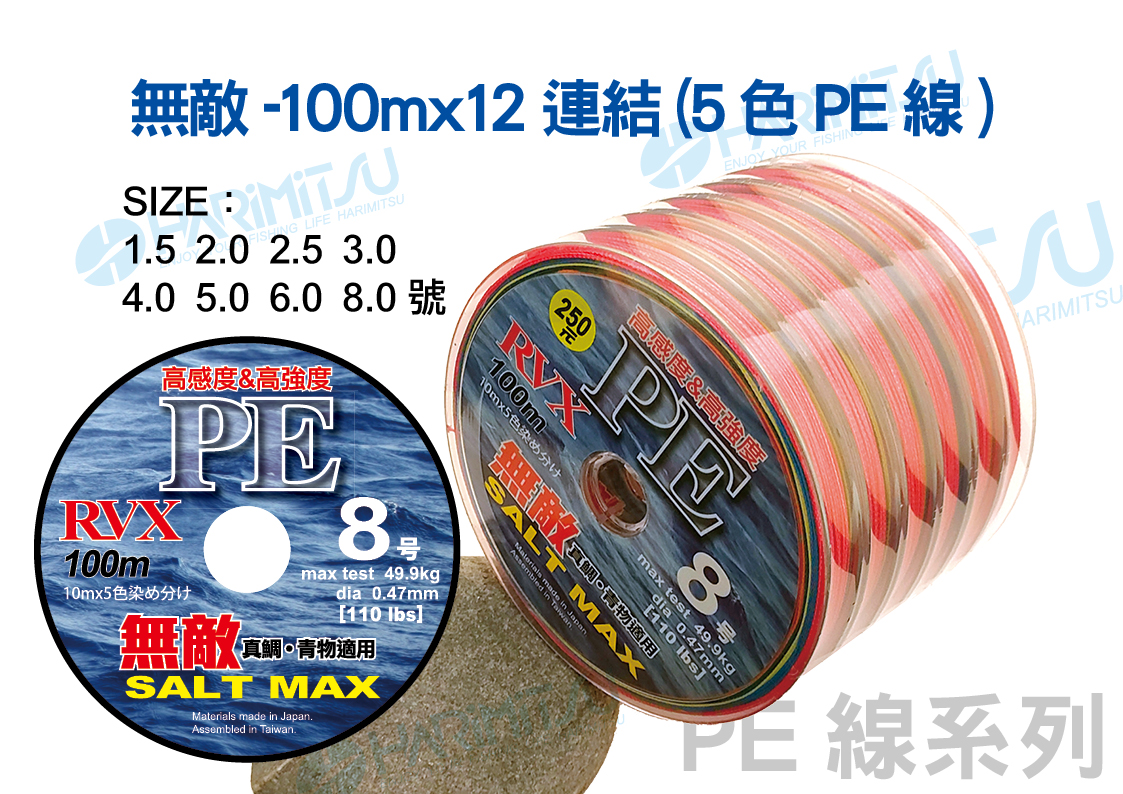 無敵-100mx12連結(5色PE線)
